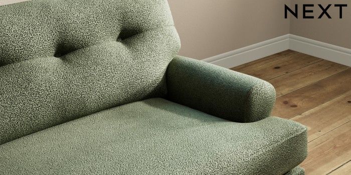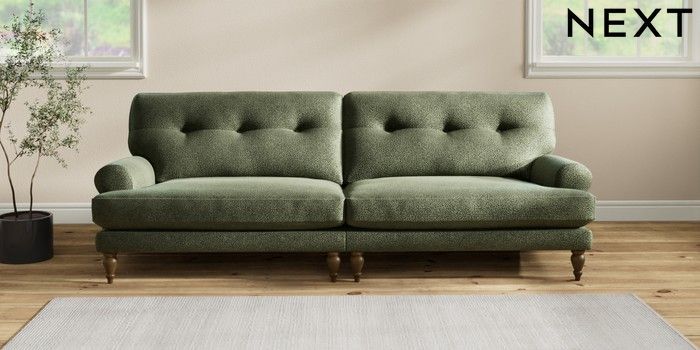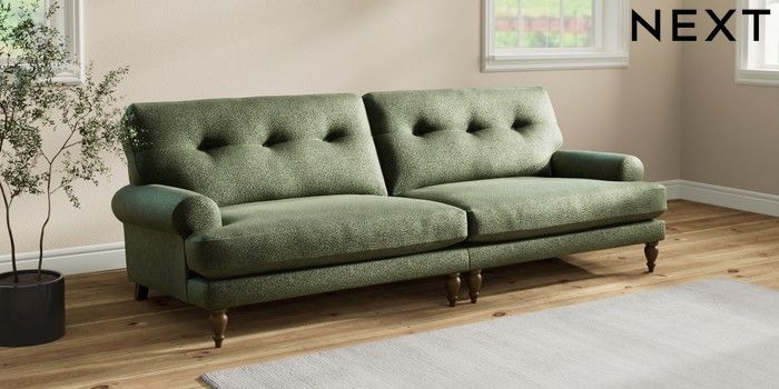 7.2.10 Erin Buttoned Back Deep Relaxed Sit 4 Seater Large Sofa Boucle Chenille Dark Moss Green High Classic Turned - Mid | Made Click here to use our website with more accessibility support, for example screen readers