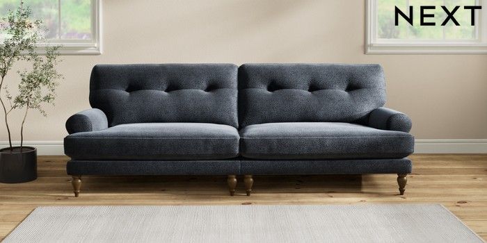 7.2.10 Erin Buttoned Back Deep Relaxed Sit 4 Seater Large Sofa Boucle Chenille Dark Slate Blue High Classic Turned - Mid | Made Click here to use our website with more accessibility support, for example screen readers