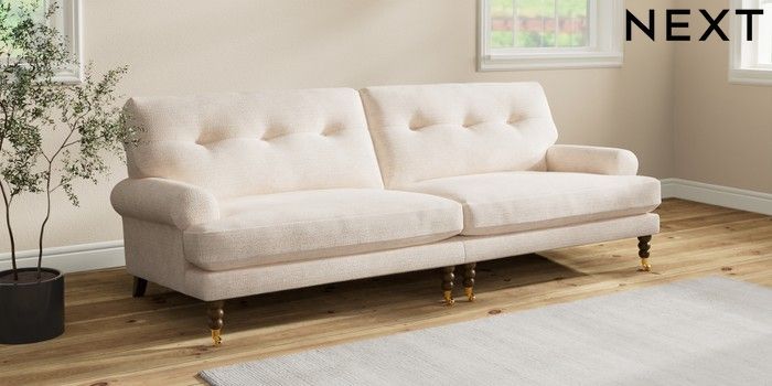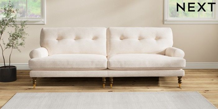 Add charm to your living space with the Erin Button Back Sofa. Its elegant scroll arms and classic button-back cushions create a timeless look. You'll love its "Relaxed Sit" cushions, specially designed for ultimate comfort. These cushions are made with clever foam and fibre, giving you a wonderfully soft, plump feel. To keep them looking their best, simply plump and turn them regularly. Plus, you can make the Erin your own by choosing from a huge range of coloured fabrics.
