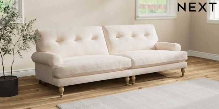 7.2.10 Erin Buttoned Back Deep Relaxed Sit 4 Seater Large Sofa Boucle Chenille Oyster High Classic Turned - Light | Made Click here to use our website with more accessibility support, for example screen readers
