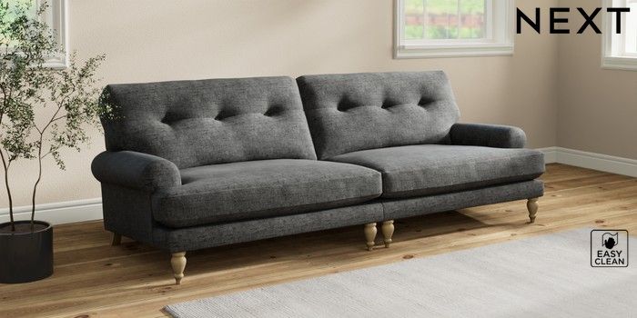 7.2.10 Erin Buttoned Back Deep Relaxed Sit 4 Seater Large Sofa Boucle Weave Easy Clean Charcoal Grey High Classic Turned - Light | Made Click here to use our website with more accessibility support, for example screen readers