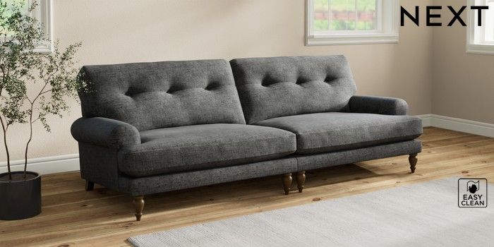 7.2.10 Erin Buttoned Back Deep Relaxed Sit 4 Seater Large Sofa Boucle Weave Easy Clean Charcoal Grey High Classic Turned - Mid | Made Click here to use our website with more accessibility support, for example screen readers