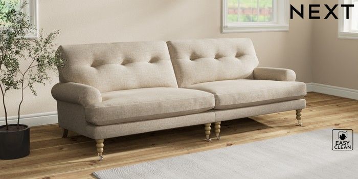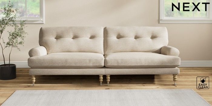 7.2.10 Erin Buttoned Back Deep Relaxed Sit 4 Seater Large Sofa Boucle Weave Easy Clean Dark Natural High Classic Turned Chrome Castor - Light | Made Click here to use our website with more accessibility support, for example screen readers