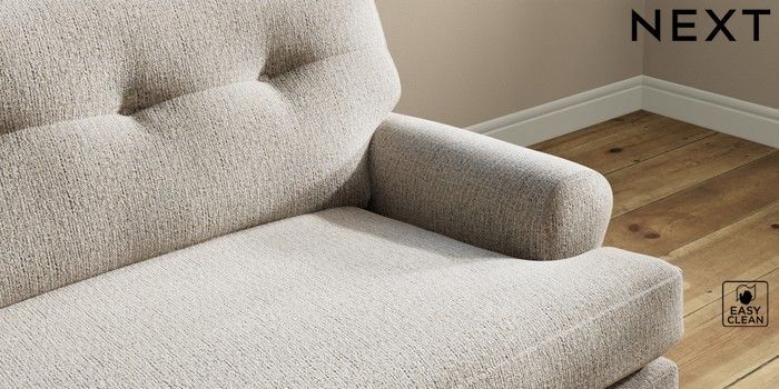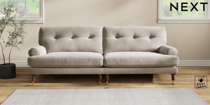 7.2.10 Erin Buttoned Back Deep Relaxed Sit 4 Seater Large Sofa Chunky Boucle Easy Clean Dove High Classic Turned Brass Castor - Mid | Made Click here to use our website with more accessibility support, for example screen readers
