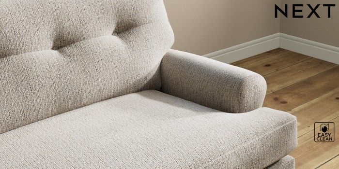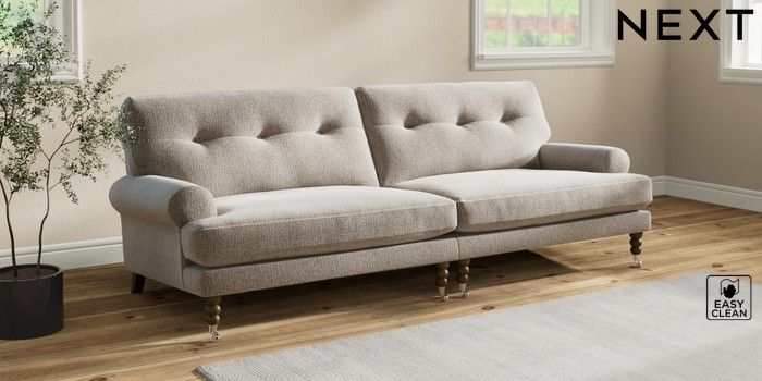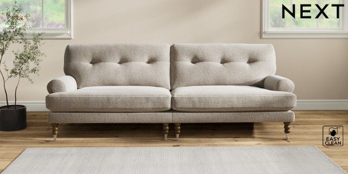 7.2.10 Erin Buttoned Back Deep Relaxed Sit 4 Seater Large Sofa Chunky Boucle Easy Clean Dove High Classic Turned Chrome Castor - Mid | Made Click here to use our website with more accessibility support, for example screen readers