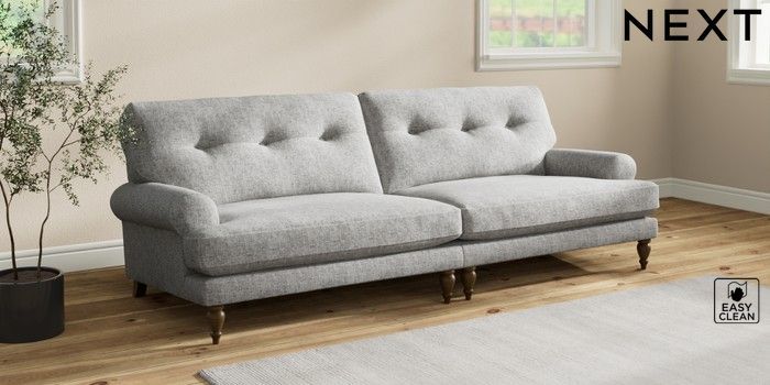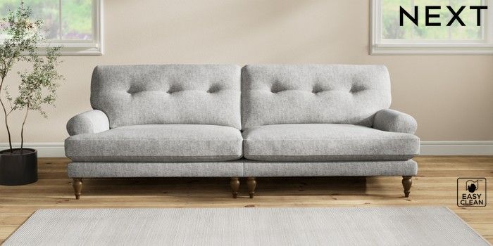 7.2.10 Erin Buttoned Back Deep Relaxed Sit 4 Seater Large Sofa Chunky Boucle Easy Clean Light Grey High Classic Turned - Mid | Made Click here to use our website with more accessibility support, for example screen readers