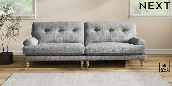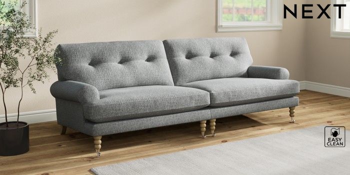 7.2.10 Erin Buttoned Back Deep Relaxed Sit 4 Seater Large Sofa Chunky Boucle Easy Clean Mid Grey High Classic Turned Chrome Castor - Light | Made Click here to use our website with more accessibility support, for example screen readers