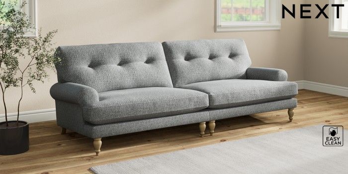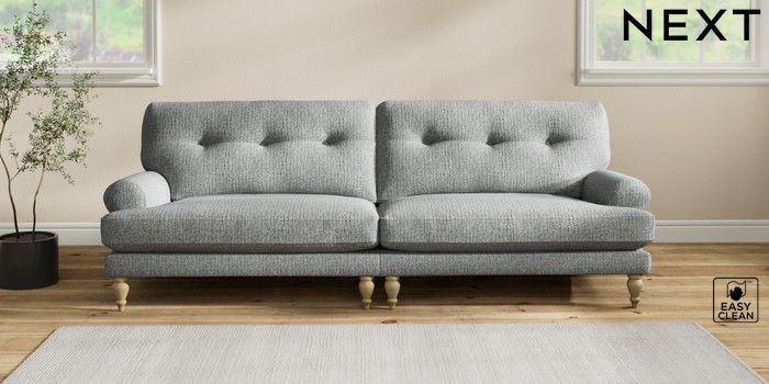7.2.10 Erin Buttoned Back Deep Relaxed Sit 4 Seater Large Sofa Chunky Boucle Easy Clean Mid Grey High Classic Turned - Light | Made Click here to use our website with more accessibility support, for example screen readers