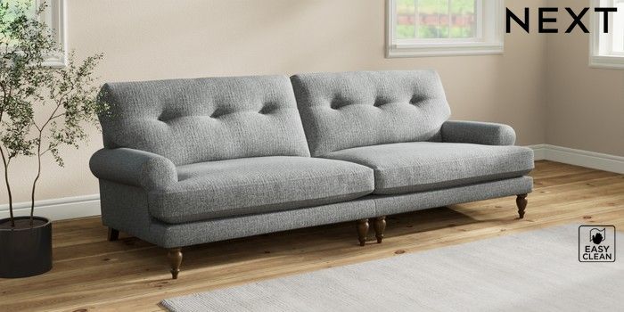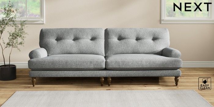 7.2.10 Erin Buttoned Back Deep Relaxed Sit 4 Seater Large Sofa Chunky Boucle Easy Clean Mid Grey High Classic Turned - Mid | Made Click here to use our website with more accessibility support, for example screen readers