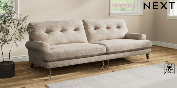 7.2.10 Erin Buttoned Back Deep Relaxed Sit 4 Seater Large Sofa Chunky Boucle Easy Clean Mid Natural High Classic Turned Chrome Castor - Mid | Made Click here to use our website with more accessibility support, for example screen readers