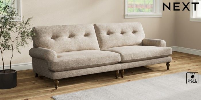 7.2.10 Erin Buttoned Back Deep Relaxed Sit 4 Seater Large Sofa Chunky Boucle Easy Clean Mid Natural High Classic Turned - Mid | Made Click here to use our website with more accessibility support, for example screen readers