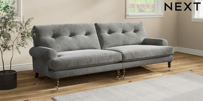 7.2.10 Erin Buttoned Back Deep Relaxed Sit 4 Seater Large Sofa Chunky Chenille Dark Grey High Classic Turned Chrome Castor - Mid | Made Click here to use our website with more accessibility support, for example screen readers