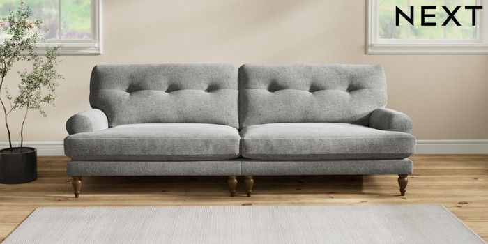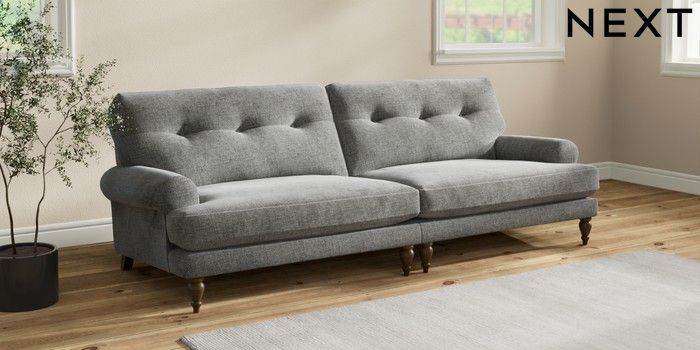 7.2.10 Erin Buttoned Back Deep Relaxed Sit 4 Seater Large Sofa Chunky Chenille Dark Grey High Classic Turned - Mid | Made Click here to use our website with more accessibility support, for example screen readers