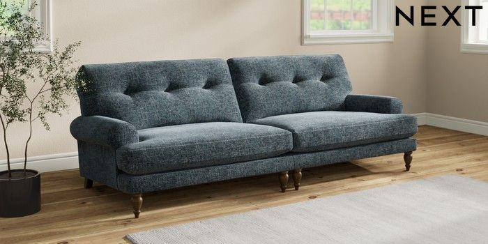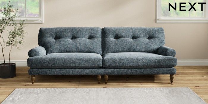7.2.10 Erin Buttoned Back Deep Relaxed Sit 4 Seater Large Sofa Chunky Chenille Dark Navy Blue High Classic Turned - Mid | Made Click here to use our website with more accessibility support, for example screen readers