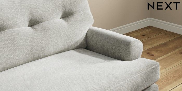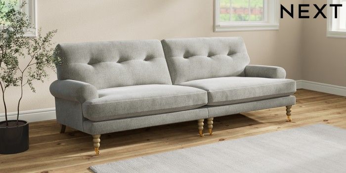 7.2.10 Erin Buttoned Back Deep Relaxed Sit 4 Seater Large Sofa Chunky Chenille Light Grey High Classic Turned Brass Castor - Light | Made Click here to use our website with more accessibility support, for example screen readers