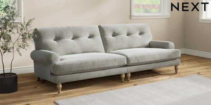 7.2.10 Erin Buttoned Back Deep Relaxed Sit 4 Seater Large Sofa Chunky Chenille Light Grey High Classic Turned - Light | Made Click here to use our website with more accessibility support, for example screen readers