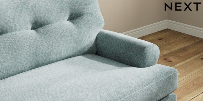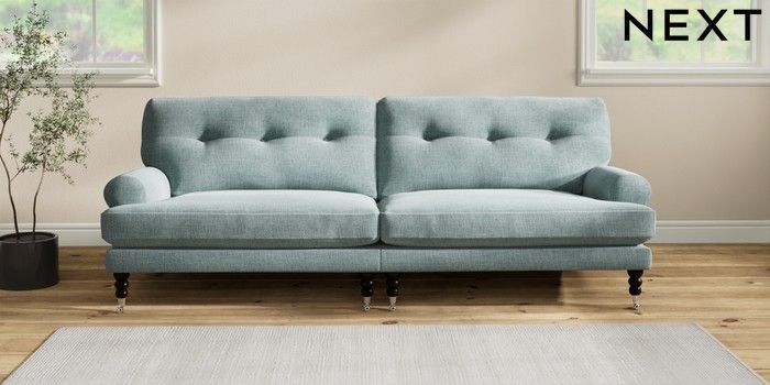 7.2.10 Erin Buttoned Back Deep Relaxed Sit 4 Seater Large Sofa Chunky Chenille Light Teal Green High Classic Turned Chrome Castor - Dark | Made Click here to use our website with more accessibility support, for example screen readers