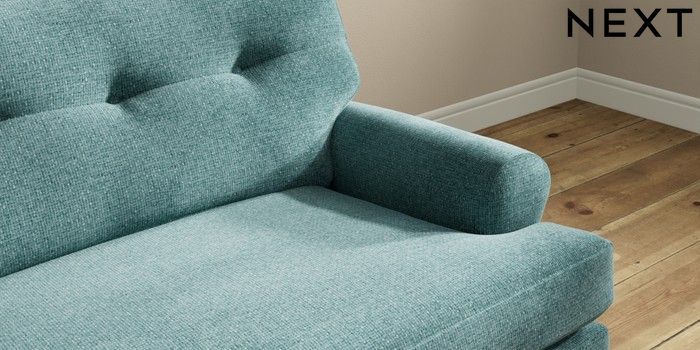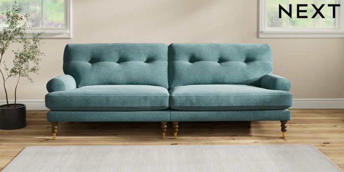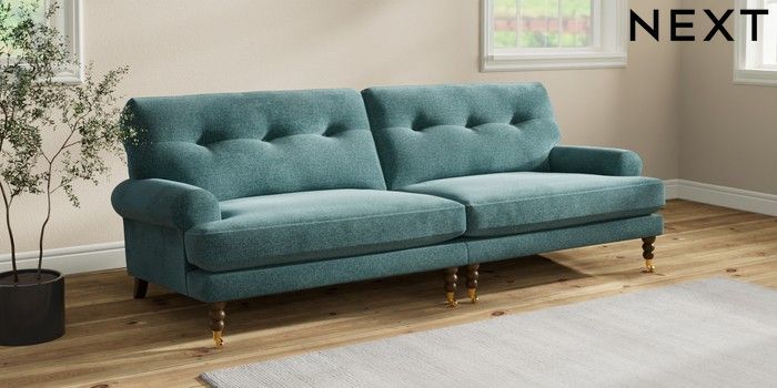 7.2.10 Erin Buttoned Back Deep Relaxed Sit 4 Seater Large Sofa Chunky Chenille Mid Teal Green High Classic Turned Brass Castor - Mid | Made Click here to use our website with more accessibility support, for example screen readers