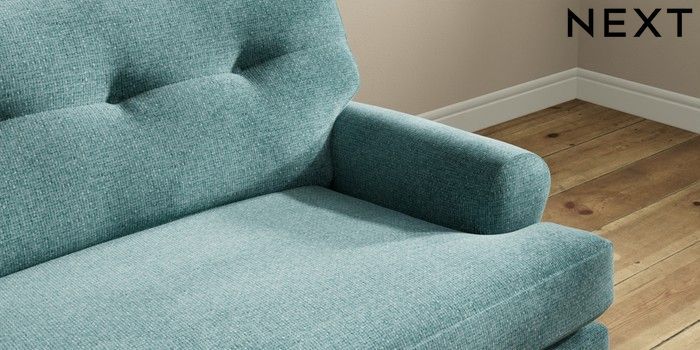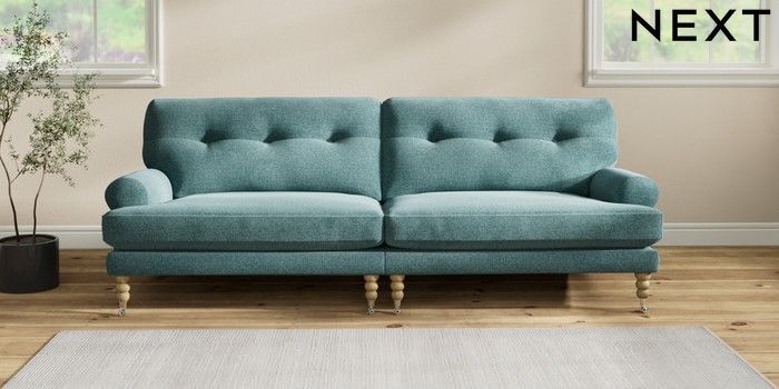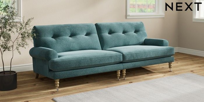 7.2.10 Erin Buttoned Back Deep Relaxed Sit 4 Seater Large Sofa Chunky Chenille Mid Teal Green High Classic Turned Chrome Castor - Light | Made Click here to use our website with more accessibility support, for example screen readers
