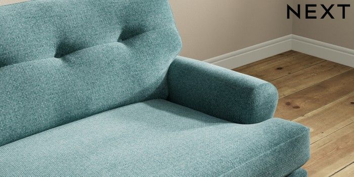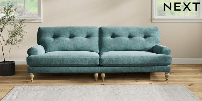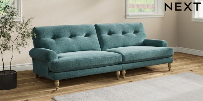 7.2.10 Erin Buttoned Back Deep Relaxed Sit 4 Seater Large Sofa Chunky Chenille Mid Teal Green High Classic Turned - Light | Made Click here to use our website with more accessibility support, for example screen readers