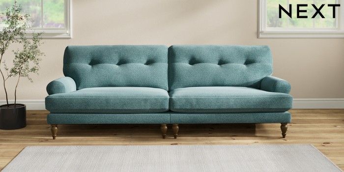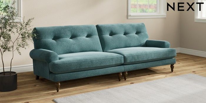7.2.10 Erin Buttoned Back Deep Relaxed Sit 4 Seater Large Sofa Chunky Chenille Mid Teal Green High Classic Turned - Mid | Made Click here to use our website with more accessibility support, for example screen readers