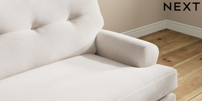 7.2.10 Erin Buttoned Back Deep Relaxed Sit 4 Seater Large Sofa Chunky Chenille Oyster High Classic Turned Brass Castor - Mid | Made Click here to use our website with more accessibility support, for example screen readers
