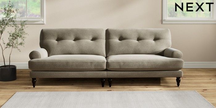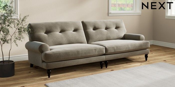 7.2.10 Erin Buttoned Back Deep Relaxed Sit 4 Seater Large Sofa Chunky Marl Light Olive Green High Classic Turned - Dark | Made Click here to use our website with more accessibility support, for example screen readers