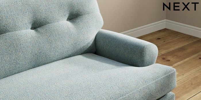 7.2.10 Erin Buttoned Back Deep Relaxed Sit 4 Seater Large Sofa Chunky Marl Mid Blue High Classic Turned Chrome Castor - Light | Made Click here to use our website with more accessibility support, for example screen readers