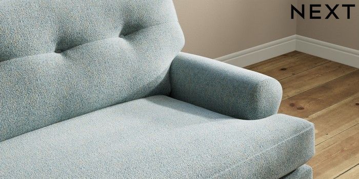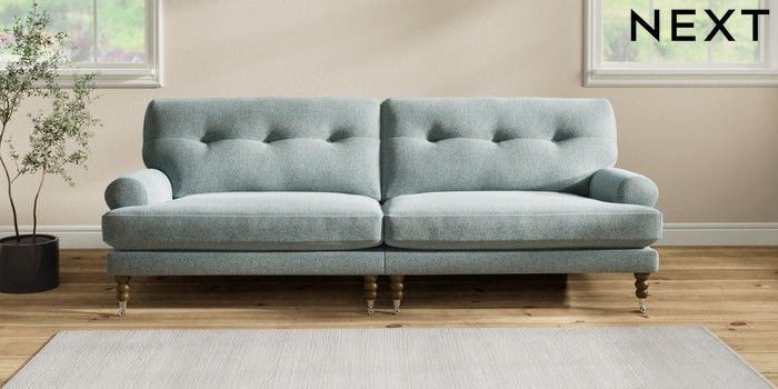 7.2.10 Erin Buttoned Back Deep Relaxed Sit 4 Seater Large Sofa Chunky Marl Mid Blue High Classic Turned Chrome Castor - Mid | Made Click here to use our website with more accessibility support, for example screen readers
