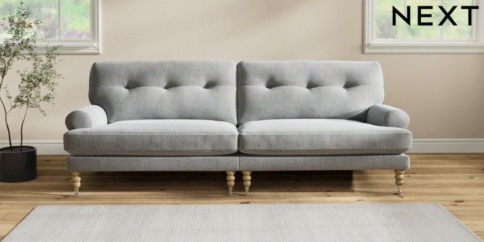 7.2.10 Erin Buttoned Back Deep Relaxed Sit 4 Seater Large Sofa Chunky Marl Mid Grey High Classic Turned Chrome Castor - Light | Made Click here to use our website with more accessibility support, for example screen readers
