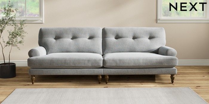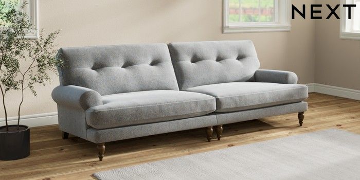 7.2.10 Erin Buttoned Back Deep Relaxed Sit 4 Seater Large Sofa Chunky Marl Mid Grey High Classic Turned - Mid | Made Click here to use our website with more accessibility support, for example screen readers