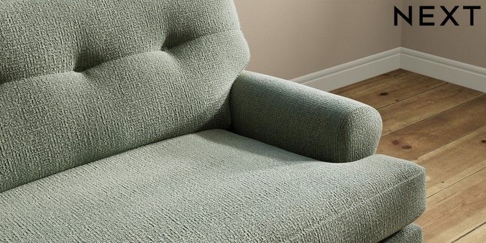7.2.10 Erin Buttoned Back Deep Relaxed Sit 4 Seater Large Sofa Chunky Texture Mid Forest Green High Classic Turned Brass Castor - Light | Made Click here to use our website with more accessibility support, for example screen readers