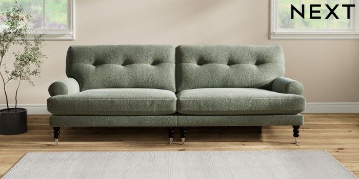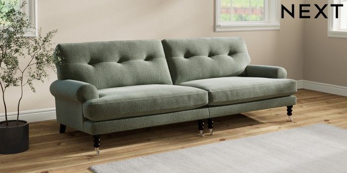 7.2.10 Erin Buttoned Back Deep Relaxed Sit 4 Seater Large Sofa Chunky Texture Mid Forest Green High Classic Turned Chrome Castor - Dark | Made Click here to use our website with more accessibility support, for example screen readers