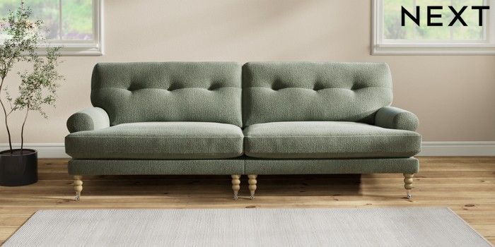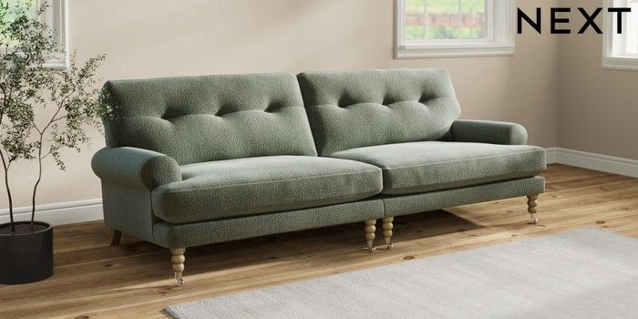 7.2.10 Erin Buttoned Back Deep Relaxed Sit 4 Seater Large Sofa Chunky Texture Mid Forest Green High Classic Turned Chrome Castor - Light | Made Click here to use our website with more accessibility support, for example screen readers