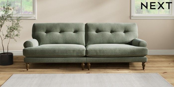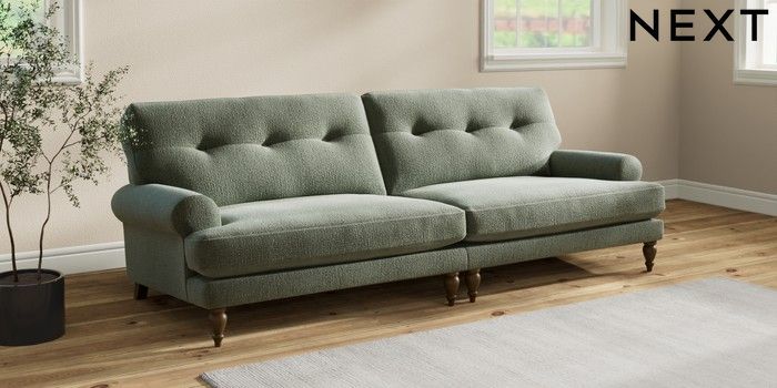 7.2.10 Erin Buttoned Back Deep Relaxed Sit 4 Seater Large Sofa Chunky Texture Mid Forest Green High Classic Turned - Mid | Made Click here to use our website with more accessibility support, for example screen readers