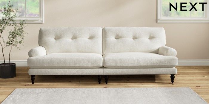 7.2.10 Erin Buttoned Back Deep Relaxed Sit 4 Seater Large Sofa Chunky Texture Oyster High Classic Turned - Dark | Made Click here to use our website with more accessibility support, for example screen readers
