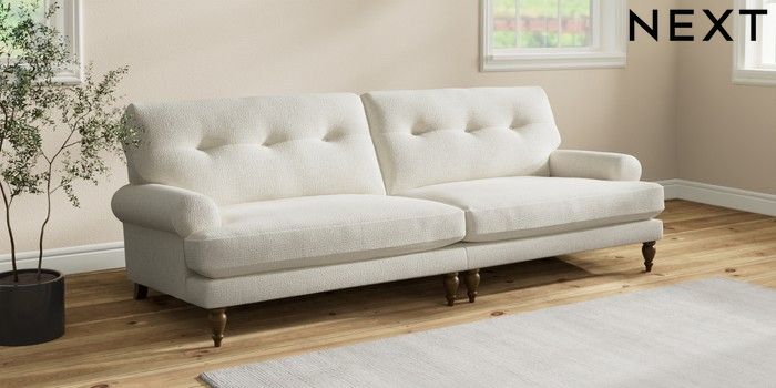 7.2.10 Erin Buttoned Back Deep Relaxed Sit 4 Seater Large Sofa Chunky Texture Oyster High Classic Turned - Mid | Made Click here to use our website with more accessibility support, for example screen readers