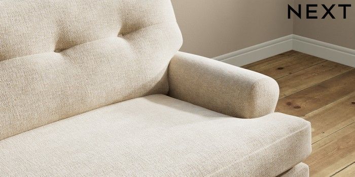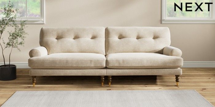 7.2.10 Erin Buttoned Back Deep Relaxed Sit 4 Seater Large Sofa Chunky Weave Cream High Classic Turned Brass Castor - Mid | Made Click here to use our website with more accessibility support, for example screen readers