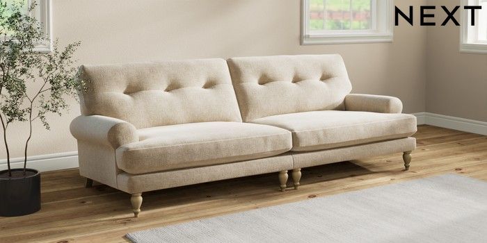 7.2.10 Erin Buttoned Back Deep Relaxed Sit 4 Seater Large Sofa Chunky Weave Cream High Classic Turned - Light | Made Click here to use our website with more accessibility support, for example screen readers