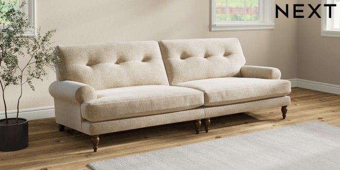 7.2.10 Erin Buttoned Back Deep Relaxed Sit 4 Seater Large Sofa Chunky Weave Cream High Classic Turned - Mid | Made Click here to use our website with more accessibility support, for example screen readers