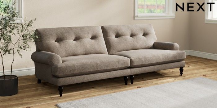 7.2.10 Erin Buttoned Back Deep Relaxed Sit 4 Seater Large Sofa Chunky Weave Dark Natural High Classic Turned - Dark | Made Click here to use our website with more accessibility support, for example screen readers