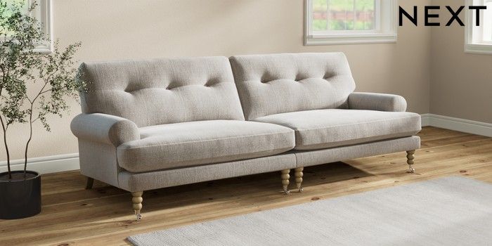 7.2.10 Erin Buttoned Back Deep Relaxed Sit 4 Seater Large Sofa Chunky Weave Dove Grey High Classic Turned Chrome Castor - Light | Made Click here to use our website with more accessibility support, for example screen readers
