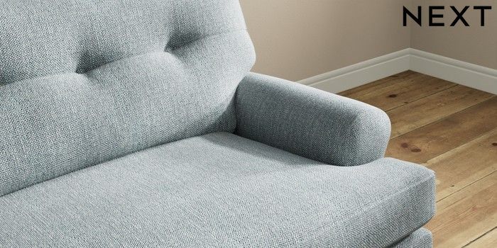 7.2.10 Erin Buttoned Back Deep Relaxed Sit 4 Seater Large Sofa Chunky Weave Mid Blue High Classic Turned Chrome Castor - Dark | Made Click here to use our website with more accessibility support, for example screen readers