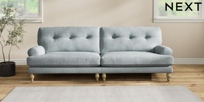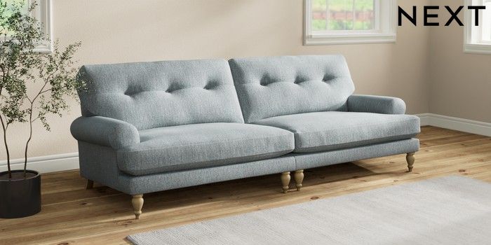 7.2.10 Erin Buttoned Back Deep Relaxed Sit 4 Seater Large Sofa Chunky Weave Mid Blue High Classic Turned - Light | Made Click here to use our website with more accessibility support, for example screen readers