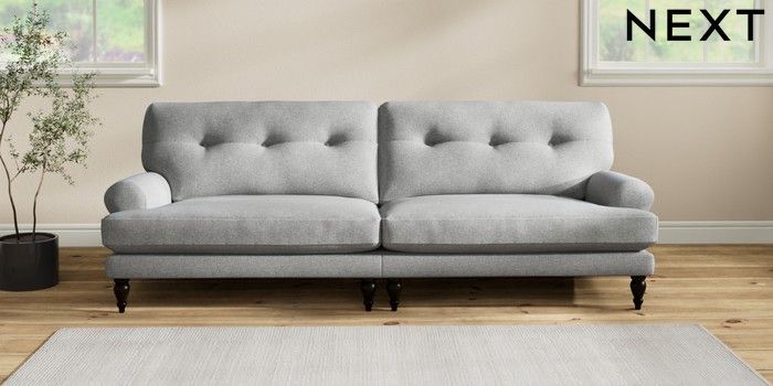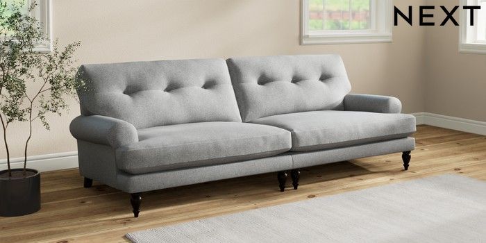 7.2.10 Erin Buttoned Back Deep Relaxed Sit 4 Seater Large Sofa Chunky Weave Mid Grey High Classic Turned - Dark | Made Click here to use our website with more accessibility support, for example screen readers