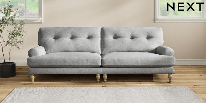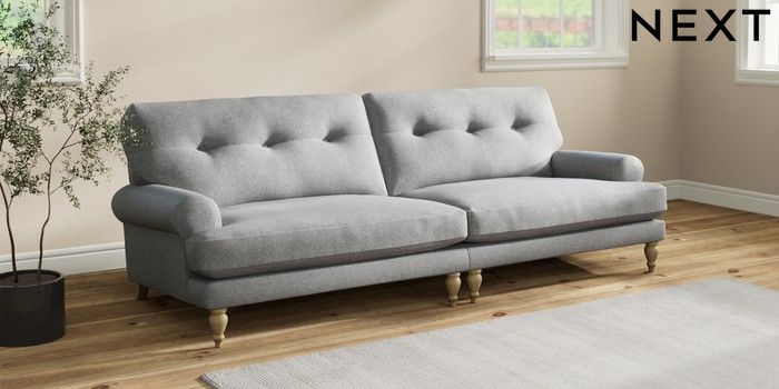 7.2.10 Erin Buttoned Back Deep Relaxed Sit 4 Seater Large Sofa Chunky Weave Mid Grey High Classic Turned - Light | Made Click here to use our website with more accessibility support, for example screen readers