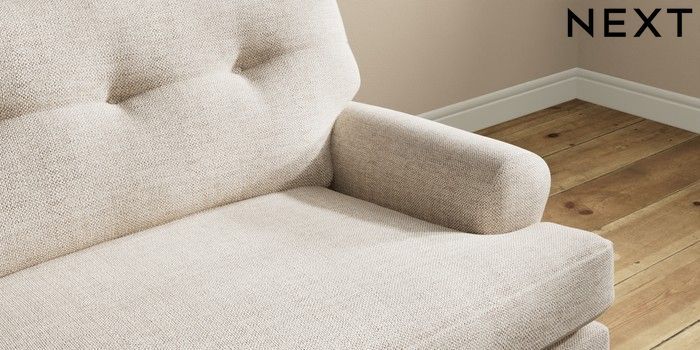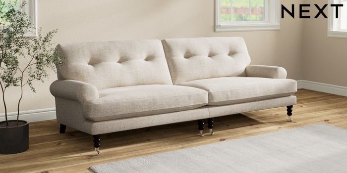 7.2.10 Erin Buttoned Back Deep Relaxed Sit 4 Seater Large Sofa Chunky Weave Mid Natural High Classic Turned Chrome Castor - Dark | Made Click here to use our website with more accessibility support, for example screen readers