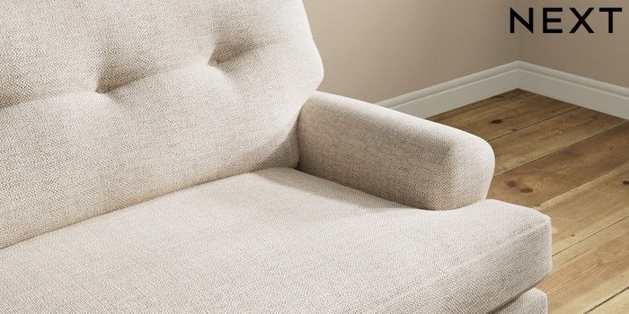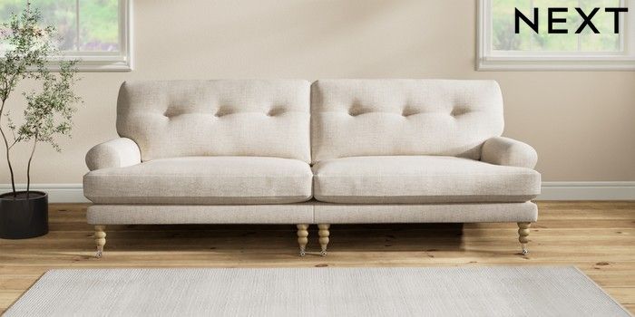 7.2.10 Erin Buttoned Back Deep Relaxed Sit 4 Seater Large Sofa Chunky Weave Mid Natural High Classic Turned Chrome Castor - Light | Made Click here to use our website with more accessibility support, for example screen readers