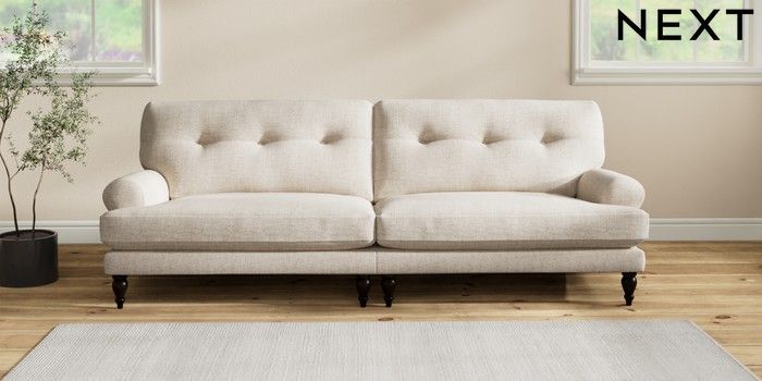 7.2.10 Erin Buttoned Back Deep Relaxed Sit 4 Seater Large Sofa Chunky Weave Mid Natural High Classic Turned - Dark | Made Click here to use our website with more accessibility support, for example screen readers