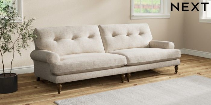 Add charm to your living space with the Erin Button Back Sofa. Its elegant scroll arms and classic button-back cushions create a timeless look. You'll love its "Relaxed Sit" cushions, specially designed for ultimate comfort. These cushions are made with clever foam and fibre, giving you a wonderfully soft, plump feel. To keep them looking their best, simply plump and turn them regularly. Plus, you can make the Erin your own by choosing from a huge range of coloured fabrics.